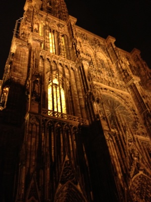 Kurz nach 22 Uhr meldeten sich dann die beiden Nachzügler, mit denen die weitere Tour gemeinsam absolviert werden sollte, so dass wir zumindest noch das gut beleuchtete Straßburger Münster gemeinsam von außen in Augenschein nehmen konnten.